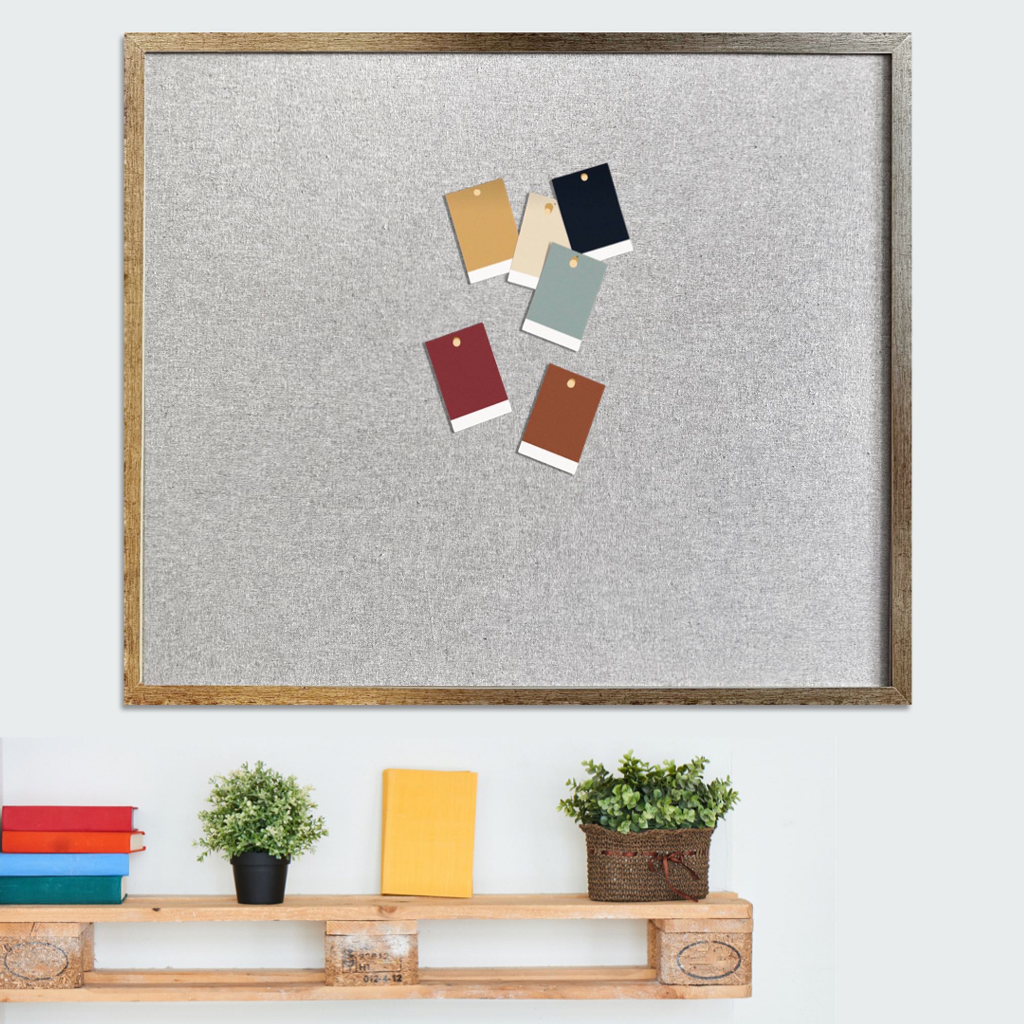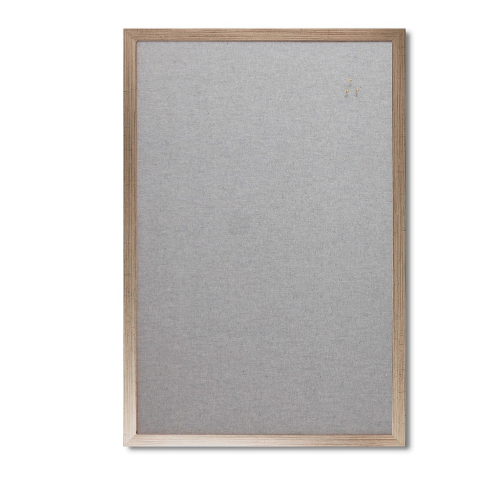 Mural de corcho forrado en tela con marco marco champaña de 2 cms. No es dorado, ni es plateado... es la mezcla perfecta para un marco elegante y moderno.