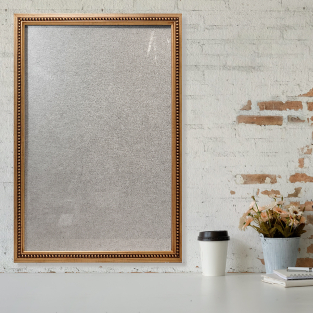 Pizarra de vidrio con Marco dorado de madera de 3,3 cms de grosor con perlitas.