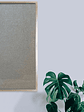 Pizarra de vidrio con fondo de tela. Marco de madera color champaña (plata/ oro) de 2 cms de grosor.